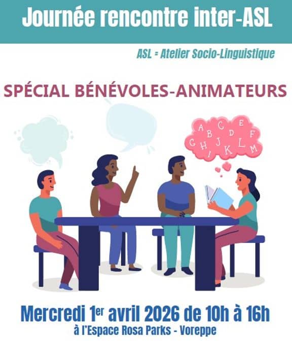 La journée a été coconstruite et animée par plusieurs coordinateurs·trices ASL (CSC Lucie Aubrac – Le Grand Lemps ; Centre Social Les Sources – La Côte-Saint-André ; Espace Rosa Parks – Voreppe ; CSC Pays du Guiers – Saint-Laurent-du-Pont ; CSC Ambroise Croizat – Renage ; Centre Social Béraudier – Voiron) avec le CRIA Isère.